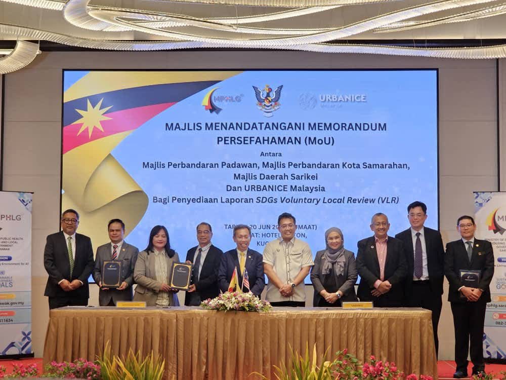 MOU Signing Ceremony for SDG Voluntary Local Review (VLR) between Padawan Municipal Council, Kota Samarahan Municipal Council and Sarikei District Council with URBANICE Malaysia